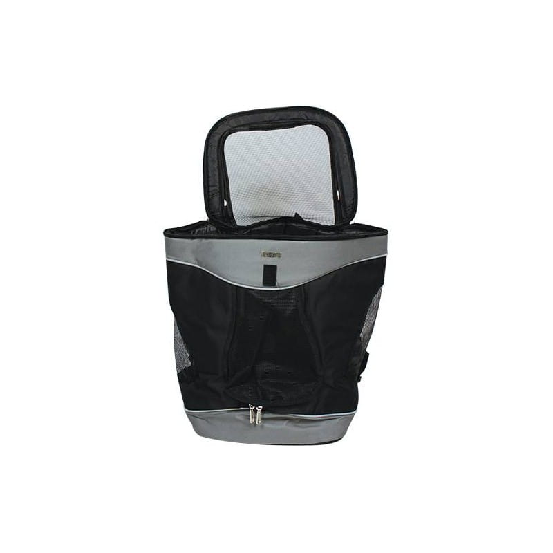 - Openings with air mesh zippers on the top and front of the bag.