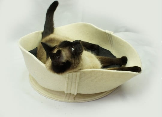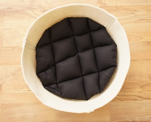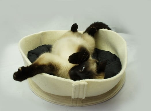 W 100% naturalne, ekologiczne legowisko w kształcie koszyka dla kotka. Wykonane ze specjalnie filcowanej, organicznej wełny merynosów z Nowej Zelandii.