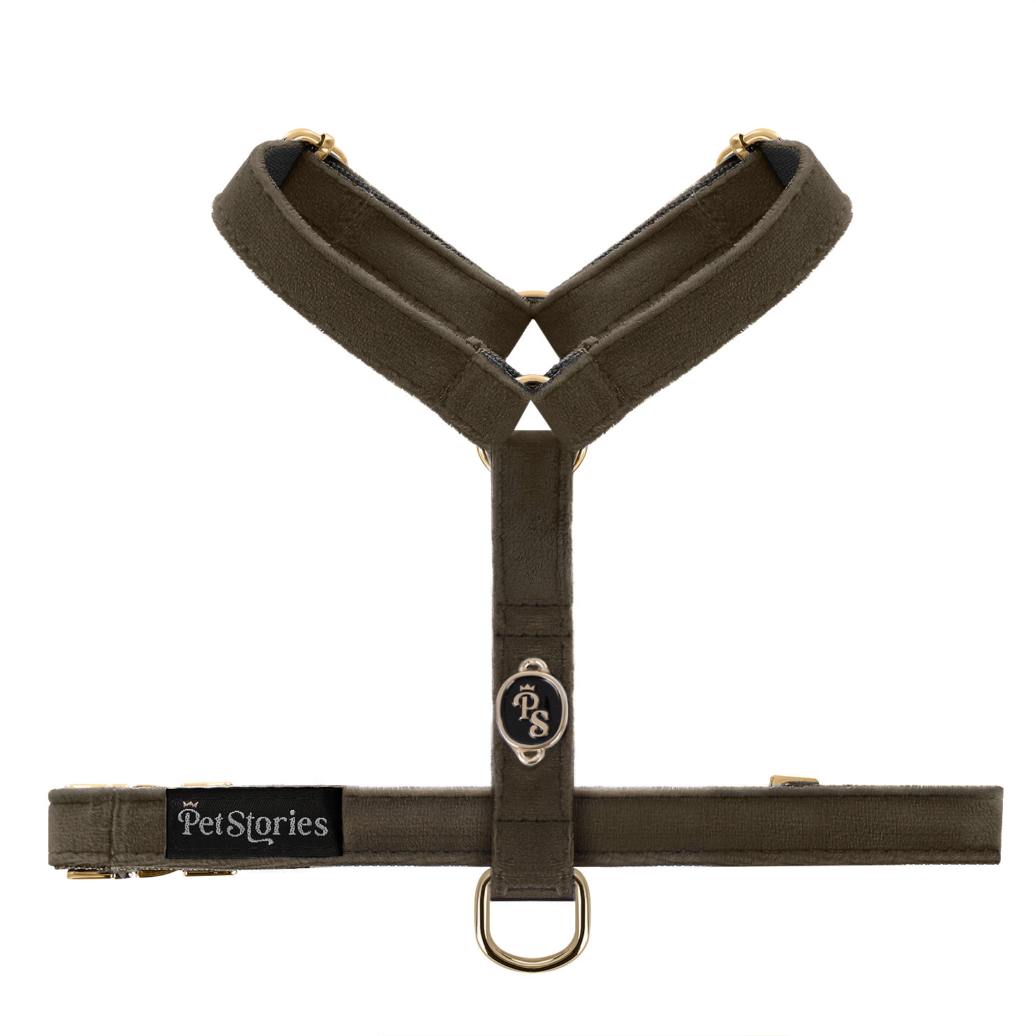 Elegancki design: połączenie weluru w beżowym kolorze z okuciami w złotym kolorze - minimalistyczna elegancja. Ekskluzywności dodaje elegancki emblemat z monogramem marki Petstories.