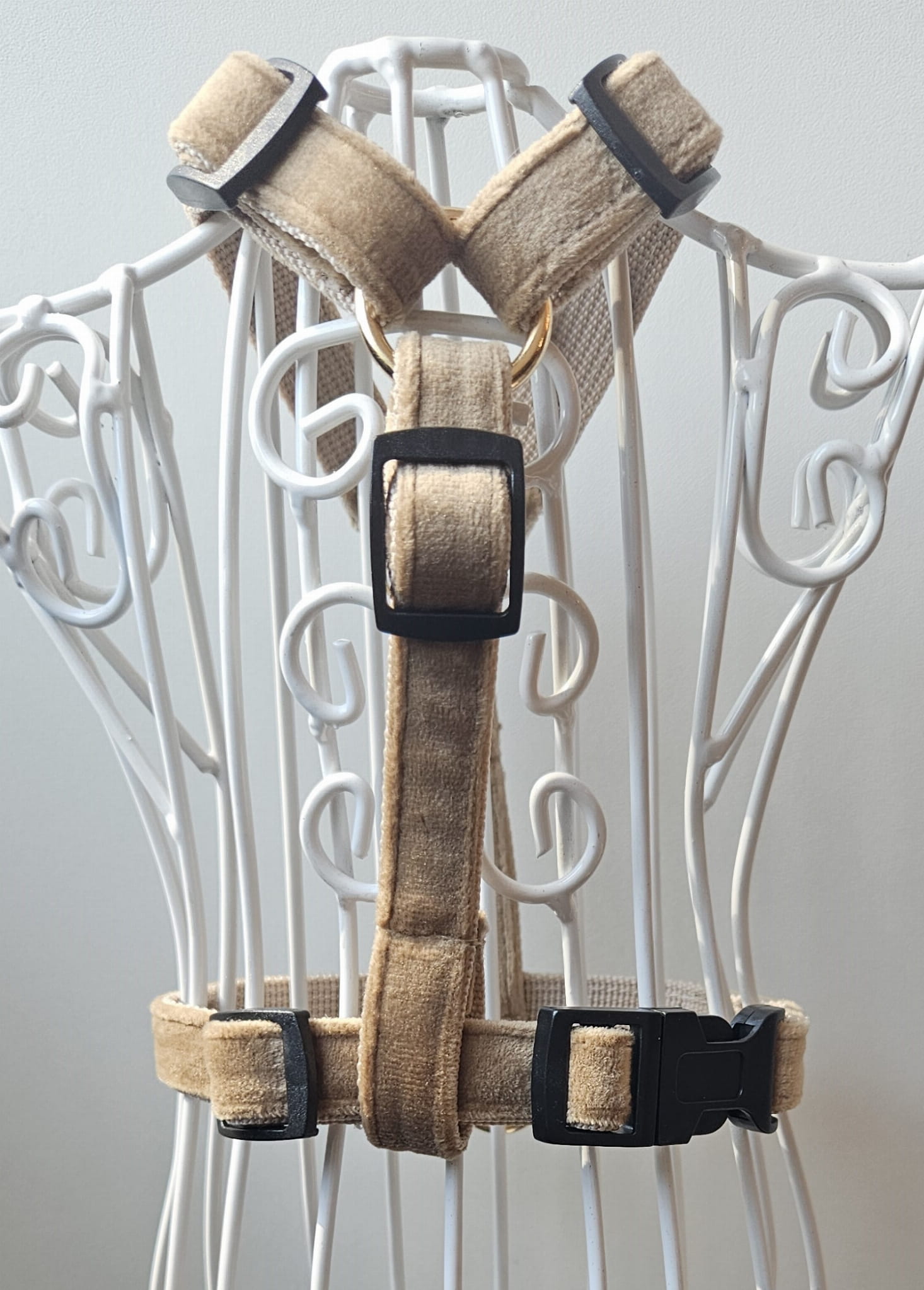 Wewnętrzna warstwa wykonana jest z miękkiej taśmy nośnej (odpowiedniej nawet dla małych i delikatnych piesków), zewnętrzna z eleganckiej welurowej tkaniny typu Petproof. Zapięcie z boku na klamerkę.