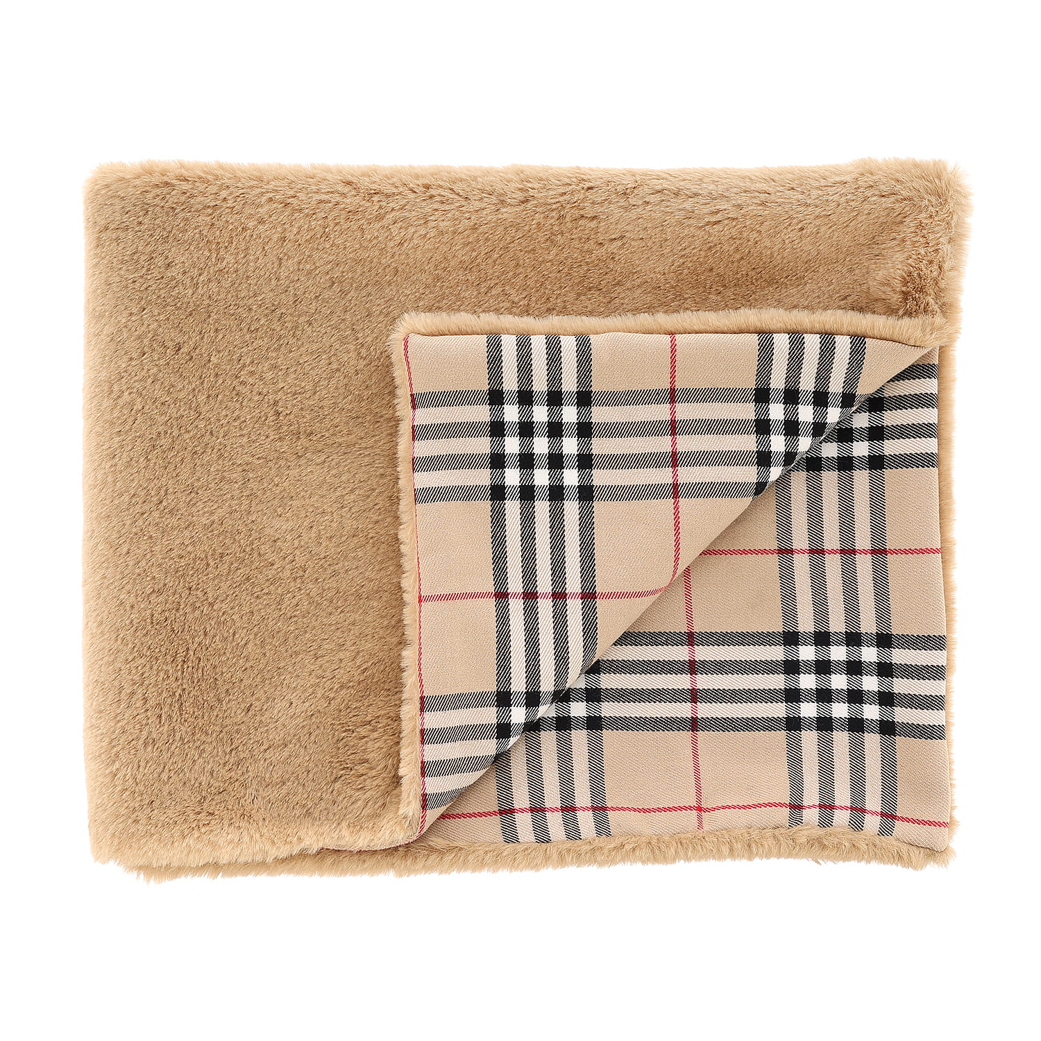 z jednej strony posiada milutki w dotyku wzór szkockiej kraty, a z drugiej strony mamy miłe futerko. Świetnie sprawdzi się także jako uzupełnienie do