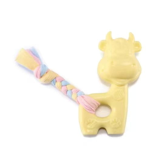 Warkocz wykonany jest z mięciutkiej, elastycznej bawełny, a maskotka z termoplastycznej gumy TPR, której nieregularna faktura czyści ząbki Twojego pupila i wspomaga masowanie swędzących dziąsełek.