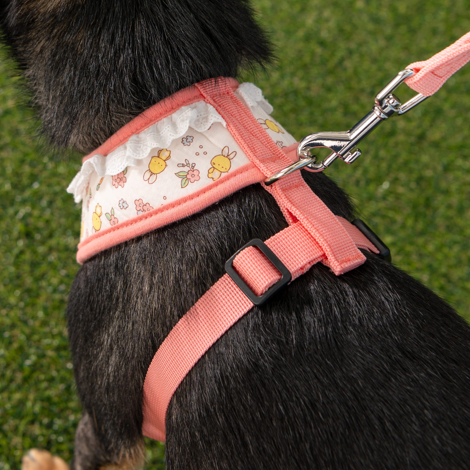 Szelki AMARA Pinkaholic New York to połączenie bezpieczeństwa i modnego wyglądu. Z kwiatowym wzorem i uroczymi króliczkami, te szelki wyróżniają się wyjątkowym designem. Dzięki regulowanej klamrze na pasie, zapewniają idealne dopasowanie, gwarantując komfort i pełną kontrolę nad pupilem.