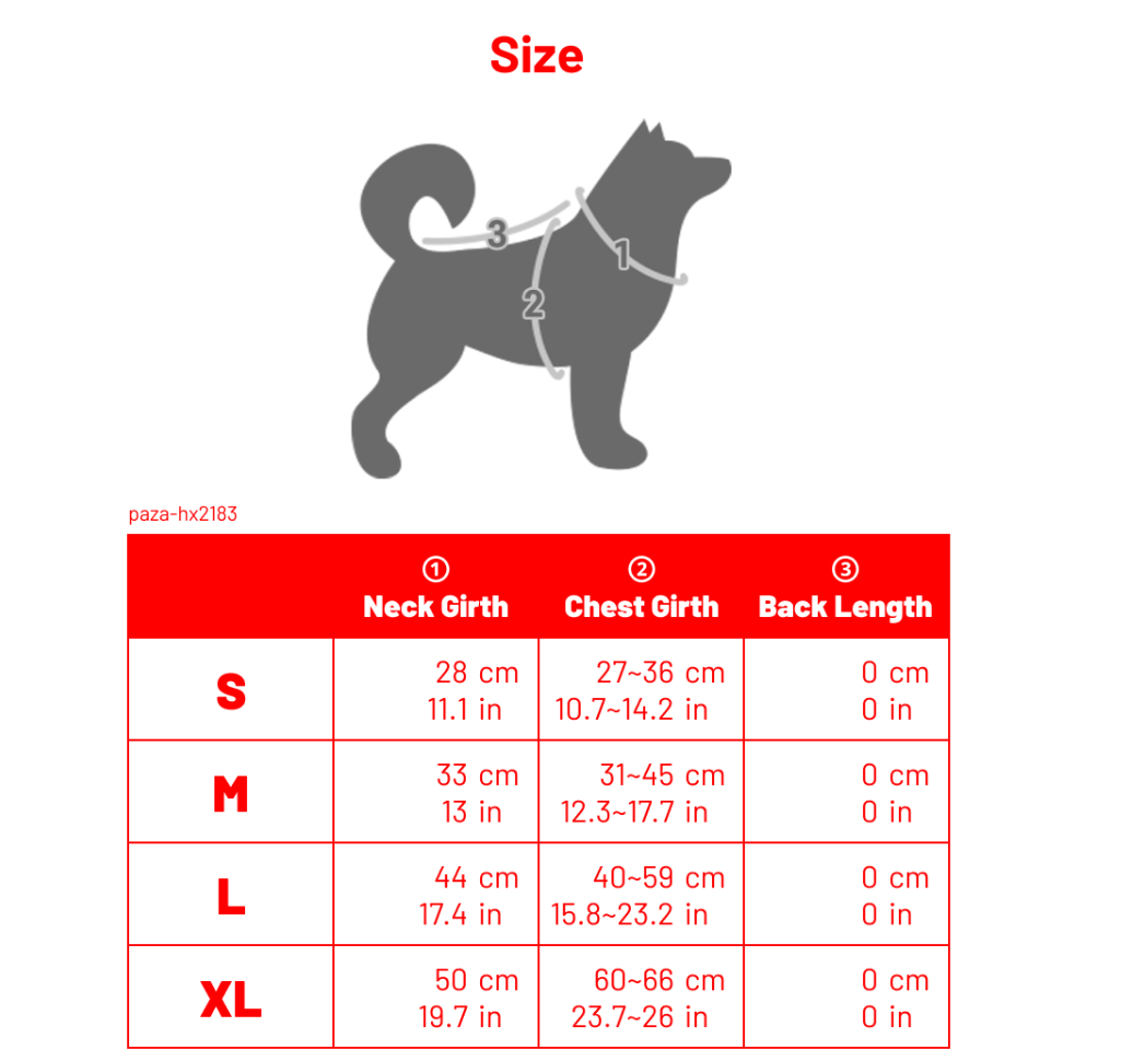 Uwaga: Każdy model i producent ma inną rozmiarówkę! Zanim dodasz do koszyka sprawdź wymiary psa i porównaj z tabelą rozmiarów