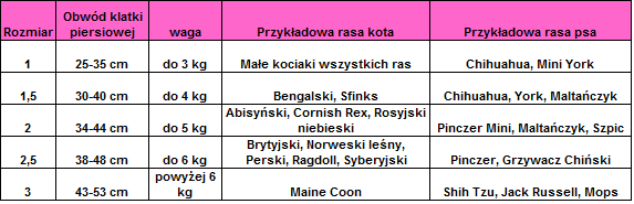 Rozmiary - na pieski o obwodzie klatki piersiowej od 25 do 53 cm - sprawdź w zakładce Tabela rozmiarów.