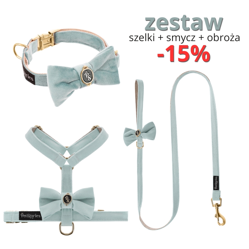 Kupując komplet (szelki + smycz + mucha/obroża), oszczędzasz 15% w porównaniu do zakupu produktów osobno. To idealne rozwiązanie dla tych, którzy cenią spójny, elegancki wygląd pupila i wysoką jakość wykonania.